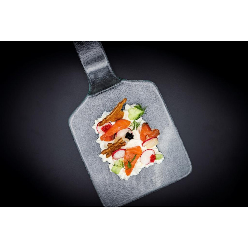 Très beau plat, épuré, délicat dans son design. Ce plat de service, d'une dimension de 27 x 45 cm, pourra servir de plateau à fromages, mignardises, entrée et dessert gourmand. Utilisation garantie lave-vaisselle.
