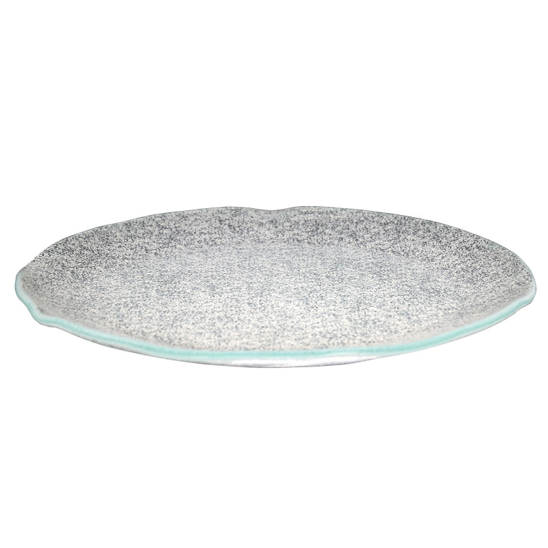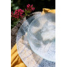Très jolie forme organique en verre, parsemée d'un décor de zestes de coco. Elégante et magnifique assiette de 30.5 cm qui prendra toute sa place sur une nappe de couleur tranchée et permettra ainsi de faire ressortir son motif léger et subtile. Utilisation garantie lave-vaisselle.