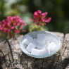 Très jolie forme organique en verre, parsemée d'un décor de zestes de coco. Elégante et magnifique coupelle de 7.5 cm qui prendra toute sa place sur une nappe de couleur tranchée et permettra ainsi de faire ressortir son motif léger et subtile. Utilisation garantie lave-vaisselle.