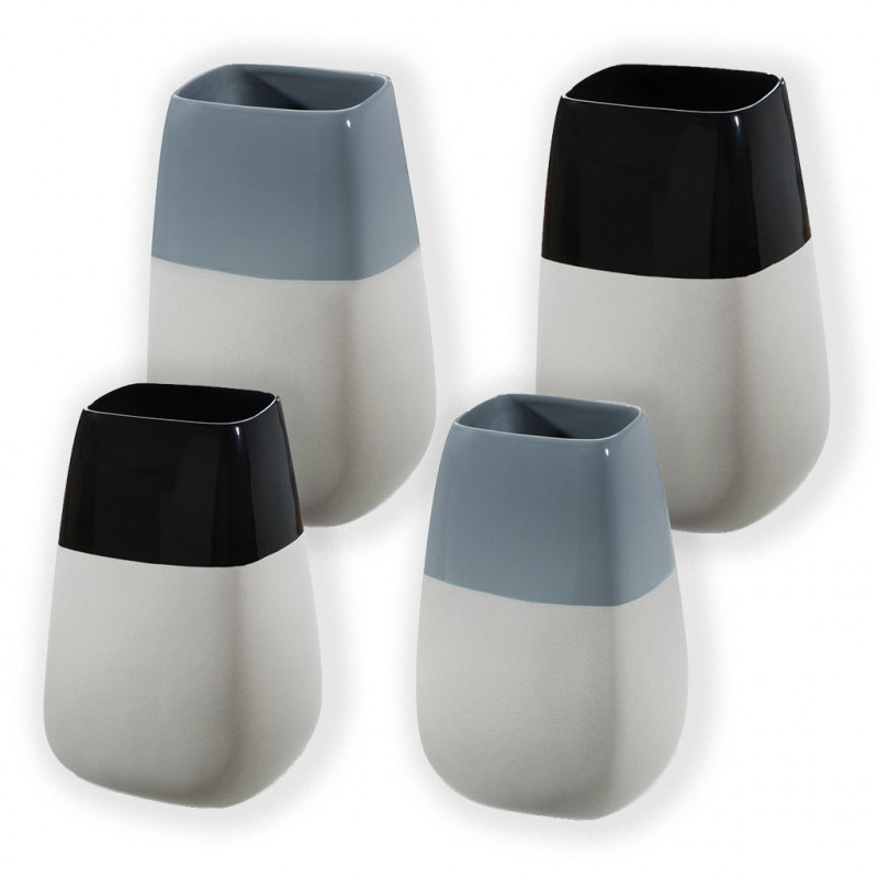 L'originalité de ce vase de 40 cm de la collection Neo peut se traduire par un subtil détail : une bande de grès naturel sur la partie inférieure associée à une couleur grise intense. Cette bande a été traitée par un émail mate qui permet de protéger le vase de toutes taches. Ce grès permet une utilisation facile, traitée contre toutes les agressions. La collection se décline en 2 couleurs, noir et gris qui peuvent s'associer les unes aux autres.