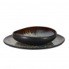 Assiette plate de 27 cm de caractère. Une toile, un tableau pour mettre en valeur de savoureux plats. On est baigné dans une ambiance à la fois ethnique et contemporaine. Le travail des émaux est remarquable spécialement sur la finition verte avec une explosion de matières et d’effets réactifs spécifiques à chaque pièce. Sublime également avec ce magnifique noir, très intense et profond travaillé en mat et brillant. Le mariage de ces deux variations de couleurs est sans nul doute le coup de cœur