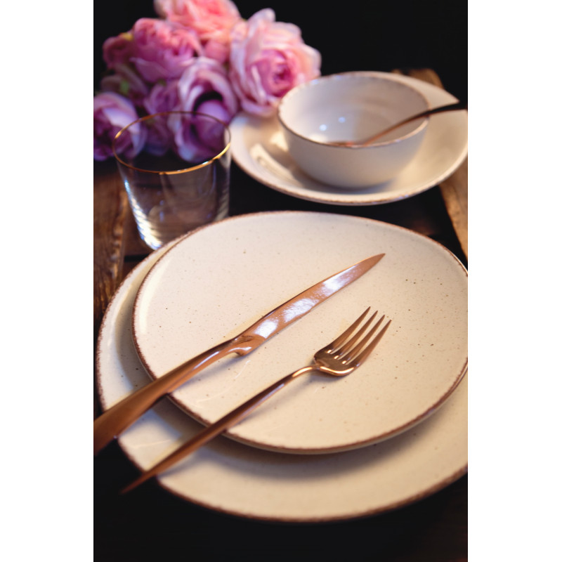 Cette collection Karen a été imaginée suivant les courbes harmonieuses d'une forme organique. Le matériau choisi pour cette assiette dessert de 22 cm est un magnifique grès fin, raffinée, d'un très beige moucheté réactif, tendance, contemporain. Cette vaisselle supporte naturellement l'utilisation du micro-ondes et du lave-vaisselle.
