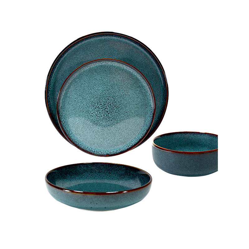 La collection Volga nous fait voyager dans une ambiance d'un bleu Prussien, réhaussée de pigments plus intenses. Les bords ont été soigneusement finis par une décoration à la main et par un filet réactif brun. Cette coupelle 19 cm est proposée dans un grès très résistant, garantie lave-vaisselle et micro-ondes.